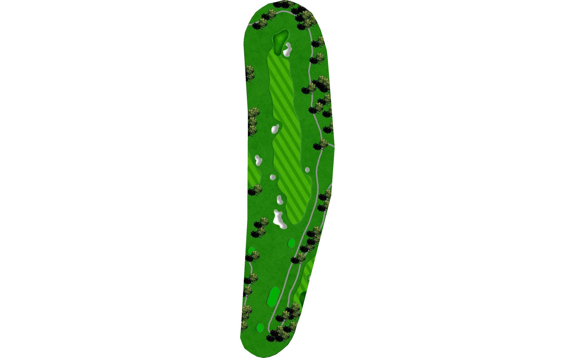 | This hole is a slightly uphill par 3 to a long, narrow green that breaks down and away from left-to-right. Sand guards the putting surface in front. |