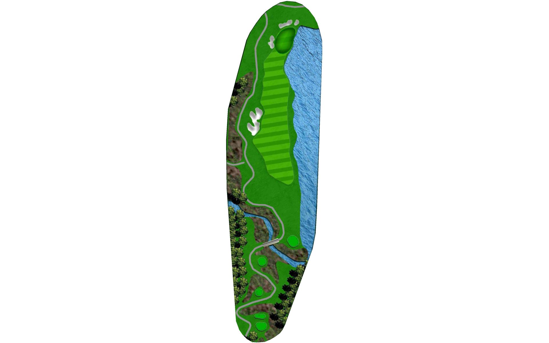This long par 5 is flanked b the meandering stream. The water is right of the tee shot landing area, then crosses the fairway and must be c…